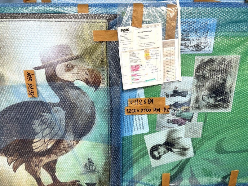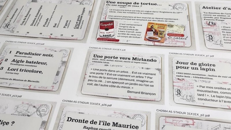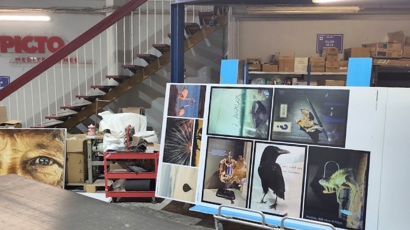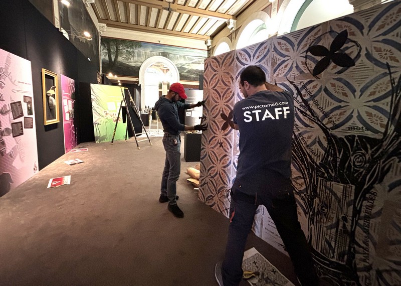 Prestations PICTO Méditerranée : Impression numérique sur différents supports papier, PET, carton plume avec découpe numérique. Pose sur place au musée par notre équipe avec l’aide active d’Anne Médard Conservatrice en Chef du patrimoine et de l’artiste Bernard Briançon.